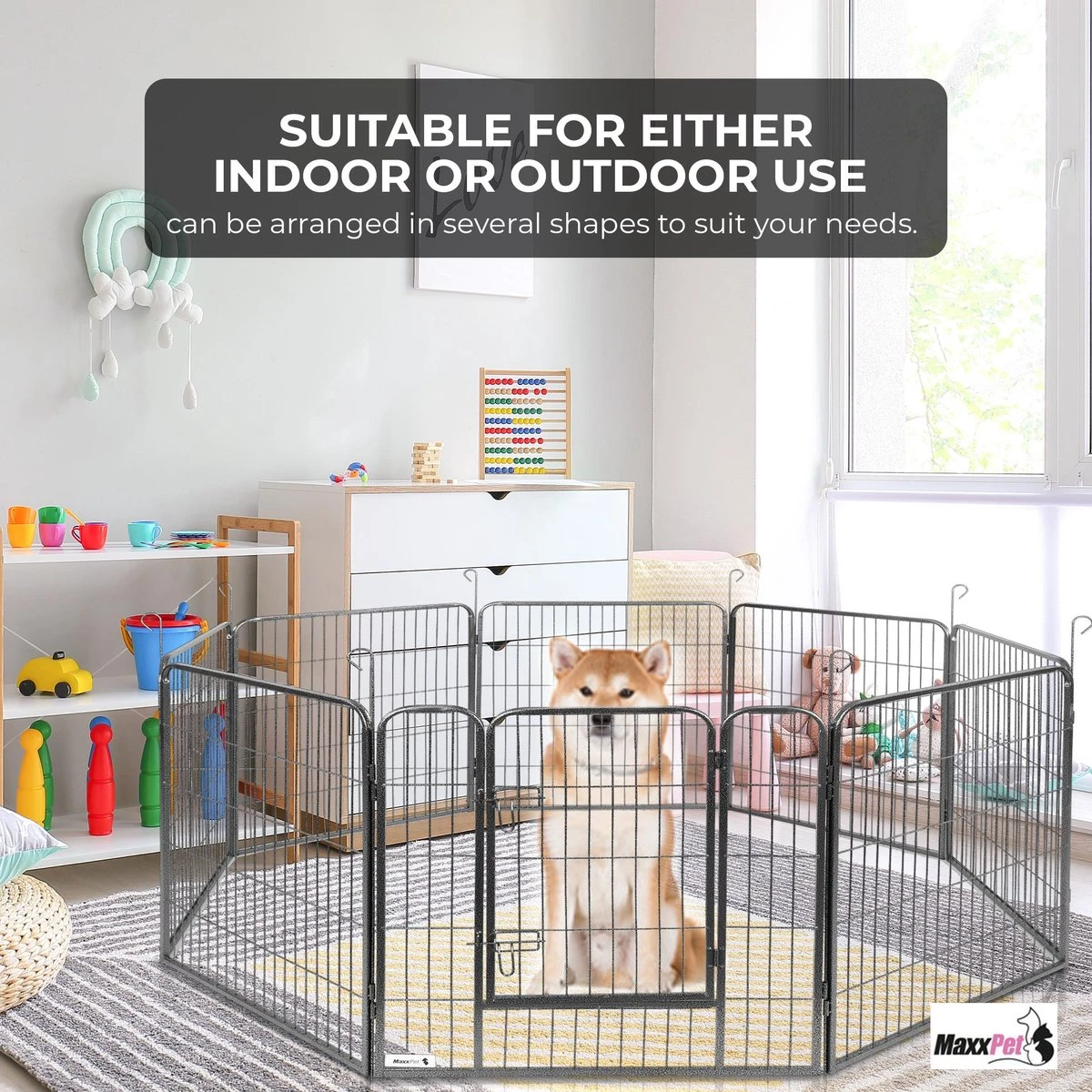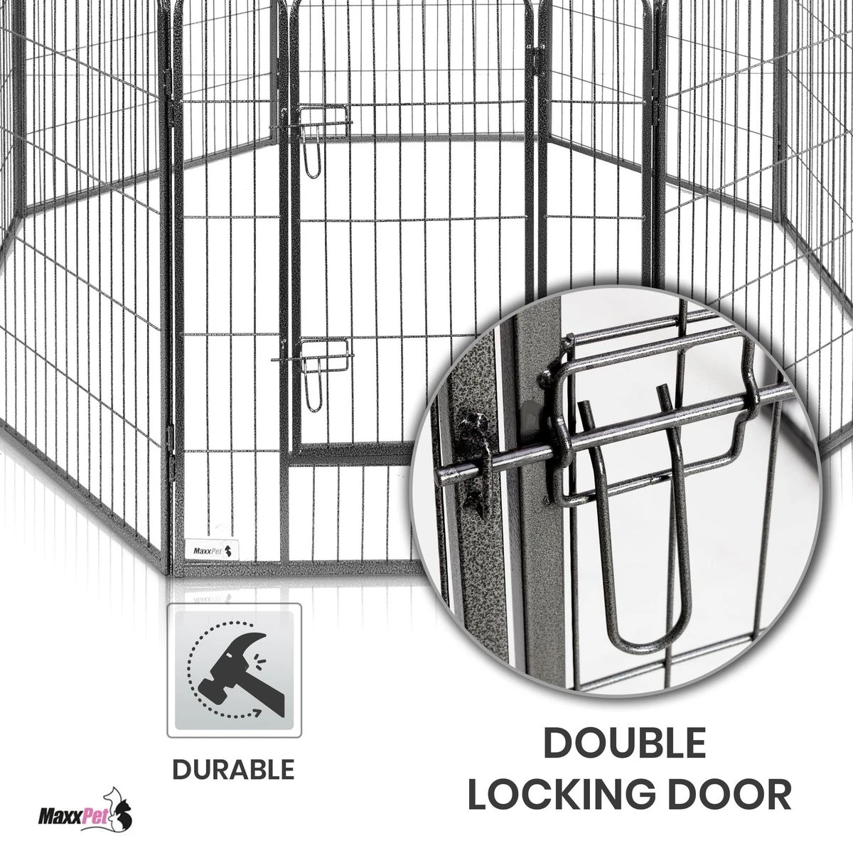 MaxxPet Puppyren – Hondenbench – Hondenren- Puppyren Met 8 Kennelpanelen – Staal -80 X 100 Cm Ø 210 Cm