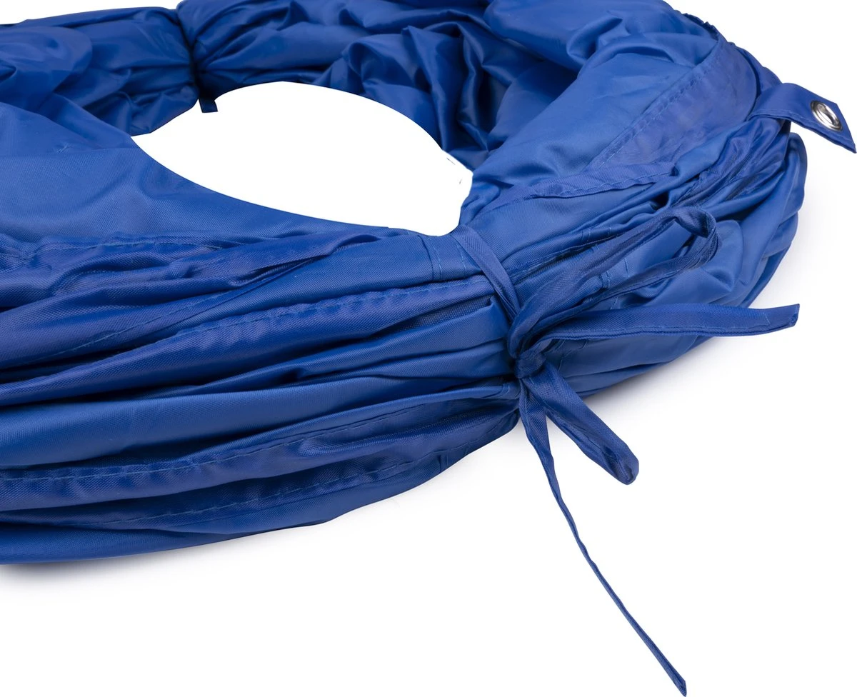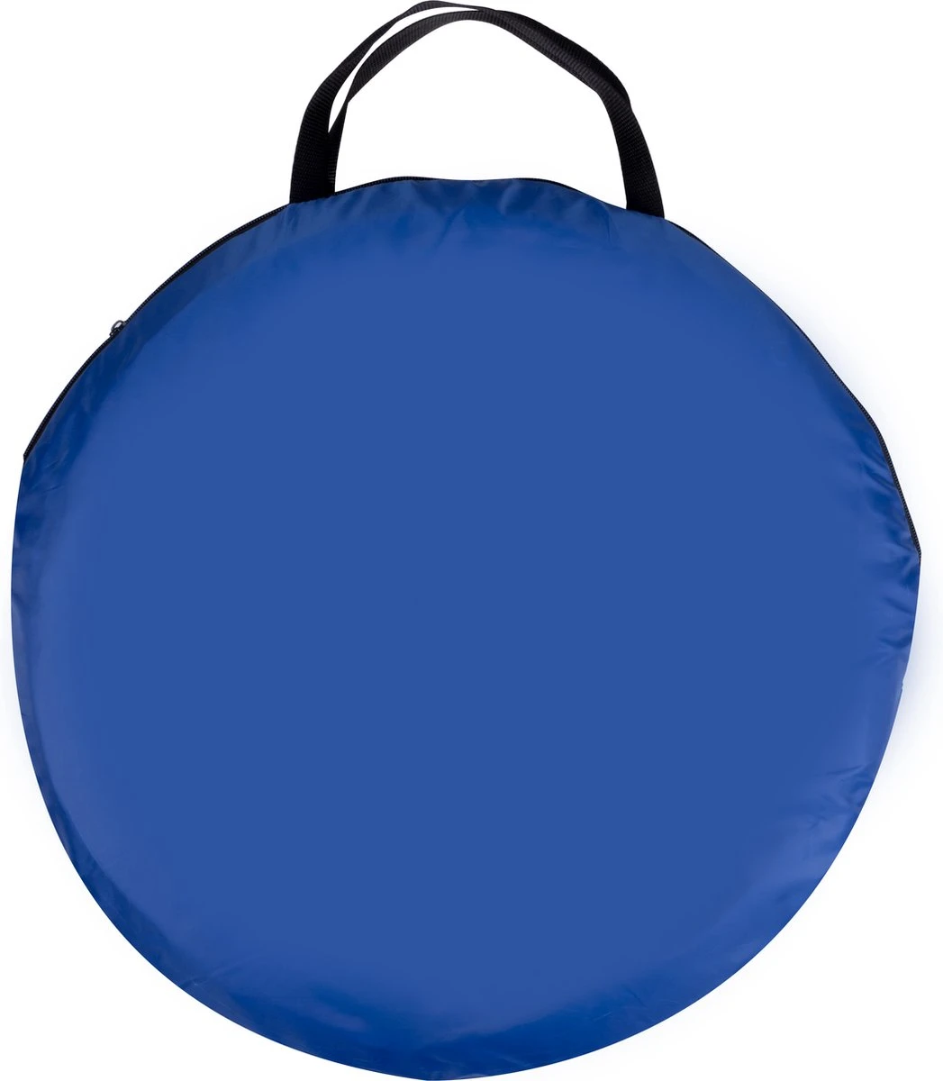 Deze hondentunnel neem je gemakkelijk met je mee. Met lussen bevestig je de ringen aan elkaar, waardoor de tunnel opgevouwen slechts zo’n 10 centimeter hoog is en circa 49 centimeter in doorsnee. Hij neemt dus weinig opbergruimte in en hij past bijvoorbeeld prima in je auto. Bovendien zit er een draagtas met handvat bij. Ook weegt de tunnel van polyester nog geen kilo. Ideaal dus om mee te nemen als je met je hond wil trainen of spelen in het bos of op het strand.